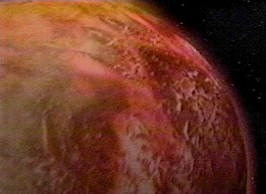 Skaro appears as a mahogany planet from space.