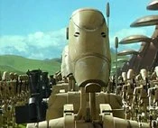 The B1 battle droids were the first in the B-series of droids, and were used by the Trade Federation during the Blockade of naboo, and later by the CIS in the clone wars. They were secretly manefactured on geonosis.